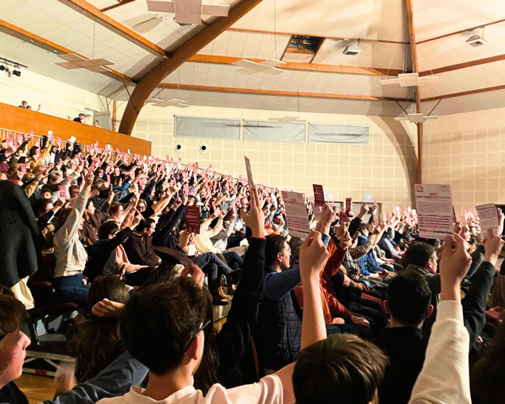 Sur scène, la formidable équipe d’improvisation du Québec, actuellement en tournée en France, affrontait l’équipe bourguignonne dans une ambiance joyeuse et survoltée. Par leurs farces, leur sens de la répartie et leur gestuelle, les Québécois ont enchanté nos collégiens comme l’ensemble du public.