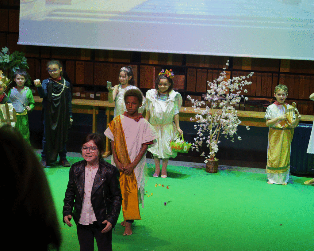 Pour leur première représentation devant leurs camarades, nos élèves de CE2 ont embarqué le public au cœur de la mythologie grecque.